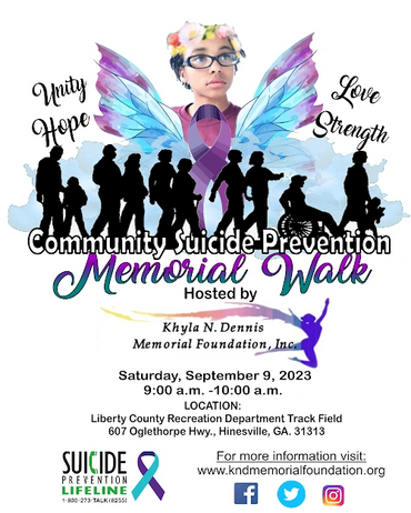 We hope to see you at our annual Memorial Walk scheduled for September 14, 2024, at 9:00am. This year we will be at the Liberty County Recreation Dept. track.